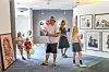 Her står familien Guddal Husby inne i den nye butikken deira.