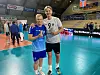 Lars Kristian Ekeland (t.v.) får mogleg sin offisielle debut for herrelandslaget i volleyball på onsdag. Då møter Norge Hellas i den første kampen i EM-kvalifiseringa. Her er han saman med Henrik Tholo Aasen frå Ølve etter at TIF Viking gjekk sigrande ut av cupfinalen i volleyball i vår. (Arkivfoto)
