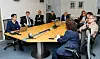 Klargjorde reglane: Jurist Kim Gundersen (t.v.) frå Kvinnherad kommune var tydeleg på at når ein formannskapsmedlem frå ei gruppe med samarbeidsavtale går ut av formannskapet, skal ein medlem frå same partiet inn i formannskapet igjen. Unnataket er om gruppa er samde om anna fordeling. Det betyr at Marianne Nordhus får plassen i formannskapet som Senterpartiet ynskjer ho skal ha.