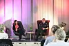 Vel førti kvinner tok turen til biblioteket fredag 8. mars for å markera kvinnedagen ved å snakka om noko alvorleg og vanskeleg. Her svarar politibetjent Are Uppheim og Aase Borgen Haktorsen frå sinnemeistringskurset på spørsmål frå salen.