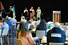 Olena Kosovska, Olena Lieskova og Nataliia Lieskova stod for eit av dei mange kulturelle innslaga under solidaritetsmarkeringa i Festsalen i Kulturhuset Husnes.