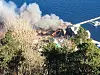 Brannen i Alsaker Brygge sett frå Blåbærhaugen klokka 15.00 på laurdag.