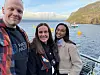Sondre Eide og Maria Danielsen frå Eide Fjordbruk tok fiskeriminister Marianne Sivertsen Næss (i midten) med seg til Watermoon-anlegget ved Varaldsøy. No viser ferske tal at anlegget leverer svært gode resultat.