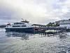 Også Sunnhordlandsruta merka sterk trafikknedgang i 2020. Her er båten innom den mellombelse snøggbåtkaien på Ranavik. (Foto: Grenda-lesar).
