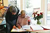 Anne Mette Årseth bur til vanleg på Voss, men har hytte ytst på Holmen i Uskedalen. Ho var ei av fleire som stakk nasa innom slektsforskar Bjarne Hauge torsdag. Som sat på Spar-butikken for å samla informasjon til si komande slektsbok. - Det er den kjekkaste plassen på jord dette, sa Årseth om Uskedalen. (Foto: Marius Nissestad)