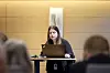 Thea Vaage informerte Kommunestyret om lærdomar frå Vestlandskonferansen.