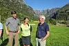 Går det som Anton Langeland (t.v.), Benthe Bondhus og Gunnar Våge vonar, kan det om nokre år opnast tunnel i fjellet bak dei.