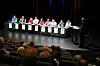Morten Nygård og Håvard Sætrevik tok ordførarkandidatane gjennom ei heil rekkje spørsmål under valdebatten torsdag kveld i kinosalen på Husnes.