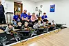 Det er kjekt og sosialt på skyteskule: (f.v.) Unni Gorm-Hansen, Sander Bergstø Rønhovde, Vemund Enæs, Hallvard Berntsen Flatebø, Jonas Fredheim, Martin Jordal Nedrevåg, Konrad Eik, Liam Prestnes, Ingeborg Olefine Nylund Nygaard, Njål Sjo Kårstad, Khadija Abdelnur Saeed, Ingrid Omvik. Bakrekke: Stig Sjo Kårstad, Jan Åge Sjo Kårstad, Erika Paulona Nylund Nygaard og Leif Skeie. (Arkivfoto)