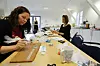 Una Kolle og Margit Lund-Mikkelson ønskjer seg byggverk til peparkakelandsbyen i Folgefonnsenteret. Her eit bilete frå fjorårets førebuingar. (Arkivfoto)