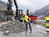Samferdselsminister Jon-Ivar Nygård sette fyrste spadestikket på Rv. 13 Djupvik-Kviturtunnelen.