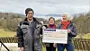 Evy og Morten frå Stendi tok i mot sjekken på 3000 kroner frå Varaldsøy Sanitetslag, overlevert av Ingunn Enæs Gjuvsland (t.h.). (Foto: privat)
