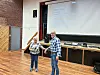 Rita Martens Meyer fortalde om pengegåva til THK-stiftelsen. Tormod Myklebust takka så mykje.
