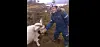 Peder Sundal Utne hyggar seg med geitene. Foto: Øyvind Utne.