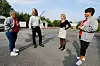May Britt Bekvik Bendiksen (t.v.) og Jorun Bakke Handeland i fagforbundet var glade for å få snakka med Sofie Marhaug og Gaute Lund frå stortingslista til Raudt.