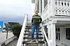 Ove Hillesland, her i sin karakteristiske strikkegensar og strikkesokkar, er inne i sitt siste år som drivar av Rosendal Turisthotell.