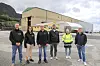 Denne gjengen frå Palfinger Marine og ECG ser fram til kompaniskap på Årsnes, når den nye hallen er ferdig der den gule kontorbygninga og den kvite plasthallen står i dag. F.v: Knut Bringedal, Inger-Johanne Hauge og Arne Willumsen i Palfinger, Asle Stusvik, Marie Røssland og Robin Holmedal Pedersen i ECG.