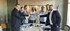 Ein glad gjeng feirar at kontrakten er underskriven. Frå venstre: Goran Petrusic, aksjonær i Energi Teknikk, Arild Klette Steinsvik, dagleg leiar i Energi Teknikk, Milan Barachov, Norimport Trading som er agent for Energi Teknikk på Balkan, samt fire representantar frå utbyggjar av kraftverka. (Foto: Energi Teknikk).