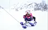 Før skirennet starta var ikkje Emma Prestnes (4) heilt sikker på om ho skulle bli med på karusellrennet, men akebrettrennet frå parkeringsplassen til tidtakarbua var ho villig med på.