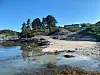 Slik ser det ut i Knutafjøro i dag. Stranda er rusta opp på dugnad og står no klar til å ta i mot badeglade gjester.