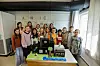 Alida Omvik Hansen (bak t.v.), Reidunn Hjelmeland, Anna Leganger, Aila Hylland Gabrielsen, Sophie Hjelmeland, Marilyn Sofie Larsen (framme t.v.), Nomi Sørensen Såtendal, Andrea Muit Guddal, Sofie Martins Sæberg, Wilma Ousdal, Oskar Haugse, Kristian Hillesdal Hegland, Jon Rangsæter Lyngnes, Trygve Falk og Joakim Bakke Skåle frå Omvikdalen skule har deltatt med tre grupper i i Smartare Energi.