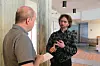 Gaute Lund (SF) i prat med Morten Nygård i Grenda etter at den lange debatten var over.