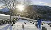 Soger frå ein vinterkledd kyrkjegard