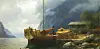 Hans Gude (1825-1903): Fjordlandskap med trelasthandel. 1867. Baroniet Rosendal.