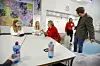 Jenny Høivik Skogseth (t.v.) og Emely Prestnes Ersland brukte tysdagsmorgonen på å fortelja Ap-toppane Marte Mjøs Persen (t.v.) Thea Vaage og Stian Davies om korleis morgonrutinane i KVV-kantina er.
