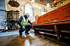 Varmestyring sparer Kvinnherad kyrkje for store energimengder. Nye omnar hjelper også i den retning. Kyrkjegardsarbeidar Helge Furdal er veldig nøgd med oppgraderinga som er gjort.