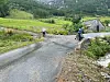 Flaumen i Herøysundet første helga i juli førte til at stein og lausmassar flytta på seg, som her ved Berge i Bringedalsbygda. Oppsitjarar ynskjer difor å fjerna massar frå elva. (Arkivfoto)