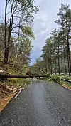 «Vegen er òg sperra av eit tre som har falt ned over ei straumlinje i Vestervik, altså før Langetunnelen når ein kjem frå Hatlestrand» skreiv ei. Ein annan skreiv at det også var eit tre i vegbanen ved Kviteberg/Tveitane.