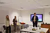 (f.v.) Lise-May Sæle og Liv Kari Eskeland vart presentert av Vegar Bjørnevik då dei hadde invitert næringslivet i Kvinnherad til eit møte med Høgre.