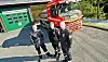 Brannsjef Atle Josdal (t.h.), Ruben Medhus og Øyvind Ousdal i Kvinnherad brann og redning er veldig nøgde med å ha ny tankbil på plass ved stasjonen i Rosendal.