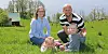 Kjersti Bruntveit og Vidar Ølfarnes, og borna Tilde Marie og Anna Emilie nyt livet på den vakre garden Vidar er odelsgut til.
