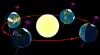 Illustrasjonen visar Jorda sine årstider. Lengst til høgre ser du vintersolverv, deretter (i retninga av pila) vårjamndøger, sommarsolverv og haustjamndøger.