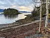 Eikholm med Fjæreflu fyr rett utanfor. Sett frå Hatlestrand den 27. februar.