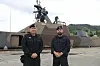 Skipssjef Eivind Vedlog (t.h.) og våpenteknisk offiser Erlend Hundeide fortalde gjerne om det fantastiske fartøyet "Gnist".