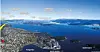 På dette tronebilete ser du avstandane som er. Sunnfast ynskjer bru frå Husnes til Huglo, og med tilkopling til Hordfast skal det korta ned reisetida mellom Husnes og Bergen til tre kvarter. No har dei invitert fire firma til å koma med forstudie på prosjektet. Illustrasjon: Sunnfast.