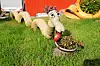 Magne Eik (72) har ein heilt spesiell hobby – han lagar flotte kreasjonar utav bildekk og anna han har liggande. Med seg på laget har han ofte sonesonen Vebjørn på fem år.