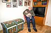 Øyvind Røyrvik har nett måla ferdig denne vakre kista som oldebarnet Theodor (seks veker) skal få.