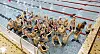 Så glade var dei 37 symjarane for søndagens juleavslutning i bassenget. Mest glade var dei for at dei like etter dette bilete skulle få lov til å konkurrera seg i mellom på ei rekkje ulike distansar.
