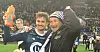 Johnny kunne sleppa jubelen laus etter å ha slått Kongsvinger søndag. Her saman med pappa Svein Jarle Furdal. (Foto: Ingebjørg Haugland)