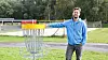 Frisbeegolfbanen på Hatlestrand har utvida. No har Terje Aksnes Øystese og dei andre frisbeegolfentusiastane ni hol å bryna seg på. (Arkivfoto).