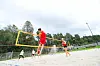 Fredrik Nistad dundrar laus på legget frå Siri Aasgard (t.h.), men Lilli Aksnes-Øystese, Emma Sandvik Rødal og Mari Svendsen Fagerlid er klare til å ta seg av smashen.