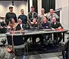 Finalebordet i NM si opningsturnering, med to Kvinnherad-innslag. Bak t.v. Einar Eikeland og i midten bak Trygve Leite.