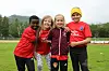 Esther (t.v), Emily, Madel og Olina syntest det er kjekt med fotballskule i Rosendal.