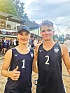 Sjur Aasgard (t.h.) frå Herøysundet vart igjen norsk meister i sandvolleyball. Her saman med makkeren Mikkel Haugh Tanggaard frå Oslo.