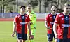 Keeper Andreas Eide smiler godt etter 98 minutt mot Askøy utan baklengsmål. Jubelen til Nikolai Mayer (nr. 2 f.h.) viser tydeleg kva Trio-spelarane syns om poenget.