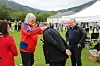 Kalle Glomsaker overrekte spesiallaga medaljar til ordførar Hilde Enstad, RT-styreleiar Jostein Hatteberg og Stig Dagfinn Tveiten frå Dimmelsvik Entreprenør.